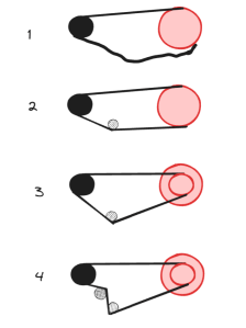 • On the social level (in red), everyone has the potential to participate and “push the cycle” to continue. This is the basis of social force. It can always be organized more efficiently and with more people, but since it isn’t ideologically specific, social force doesn’t have to be subordinate to the political level (in black). However, this also means that the political decisions of a movement are not always influenced by the rank-and-file participants.